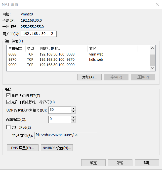 GATEWAY=192.168.30.2 //网关需要和NAT设置里网关ip一样